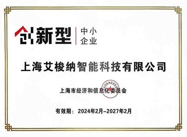 艾梭纳智能荣获上海市"创新型中小企业"荣誉称号